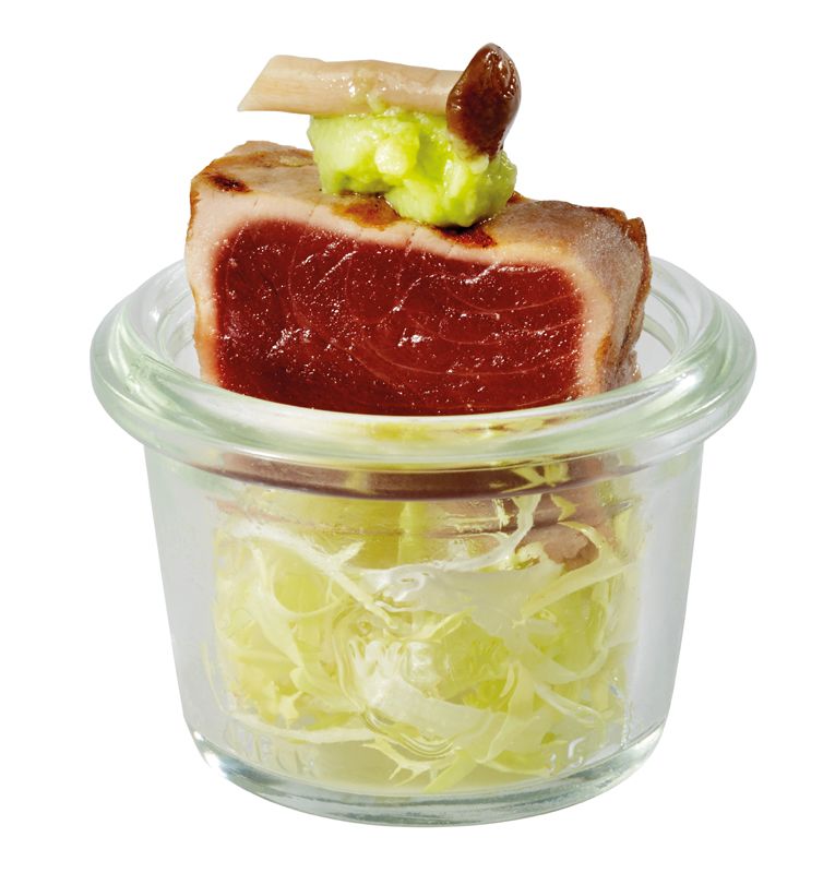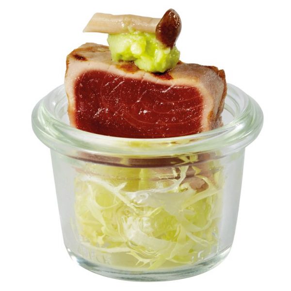 Borcan pentru servire . fabricat din sticla groasa , rezistent la fierbere si sterilizare, diametru 6 cm , inaltime 8 cm , capacitate 0.16 L.